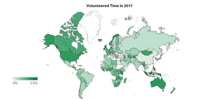 بر اساس نتایج، به طور متوسط از هر ۱۰ نفر، بیش از چهار نفر در یکی از ماههای سال ۲۰۱۷ میلادی به یکی از سه شکل زیر در فعالیتهای نیکوکاری و داوطلبانه اجتماعی شرکت کردهاند: ۱- مقداری پول در اختیار یک مؤسسه خیریه قرار داده اند ۲- به طور منظم مقداری از وقت و انرژی خود را صرف فعالیت داوطلبانه در یک سازمان مردمنهاد یا خیریه کردهاند و3_ به غریبهای که به کمک نیاز داشته است یاری رساندهاند.