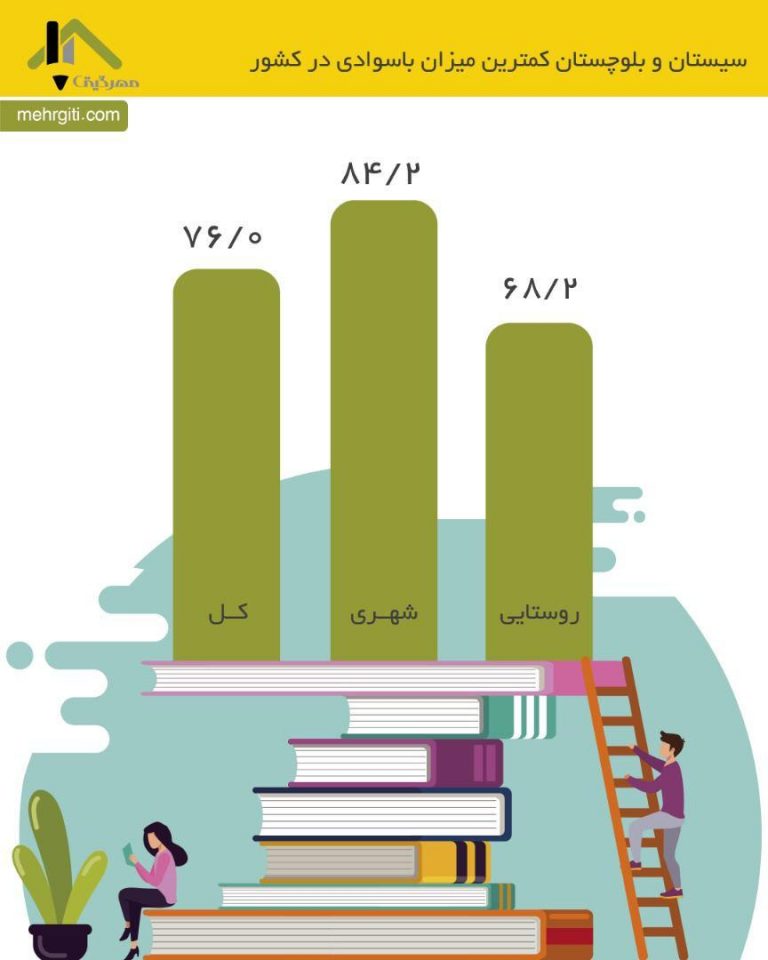 بیشترین نرخ بیسوادی در کشور مربوط به استان سیستان و بلوچستان است که ۳۱.۸ درصد جمعیت روستایی این استان بیسوادند.