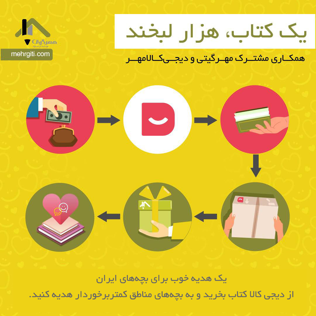 در همکاری مهرگیتی و دیجیکالا شما با ورود به صفحه دیجیکالامهر میتونید کتابهایی که دوست دارید انتخاب کنید و خریداری کنید تا ما در طرح «کتاب برای همه» به کتابخونههای مناطق کمتر برخوردار کشور ارسال کنیم.
