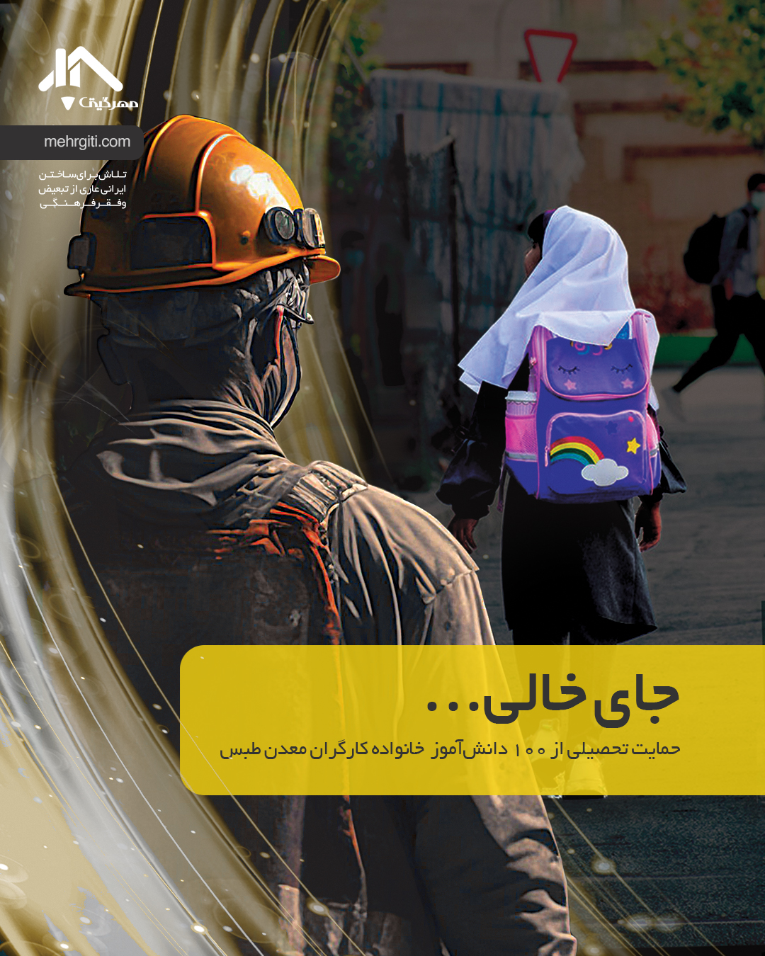 قصد داریم کاری بکنیم که شاید کمی از غم نبود پدر را برای این فرزندان کم کند، تصمیم گرفتیم تا با همراهی شما ۱۰۰ دانشآموز از خانواده کارگران معدن طبس را در طول سال تحصیلی تحتپوشش طرح حمایت تحصیلی مهرگیتی قرار دهیم و کمک هزینه تحصیل این عزیزان را تأمین کنیم.
